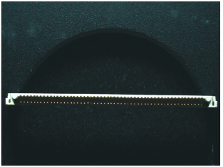 IC针脚平整度检测。用条形光源CB-9019-B将光线打到IC针脚的顶端面被打白,背景呈黑色,对比明显。