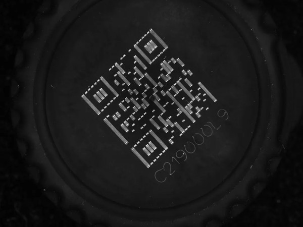 案例简述:瓶盖中间有凸起光滑圆点会反光,使用双偏振环光,可消除反光把背景打黑,二维码反射呈现亮色,与表面形成鲜明对比。